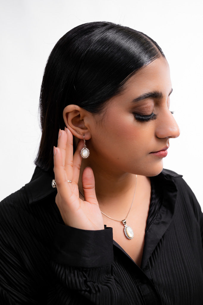 At Husnesang, jewelry is never just an ornament — it is a narrative you wear. This set, titled Nas-e-Sadaf is inspired by the quiet strength of within. Just as the pearl forms layer by layer, our lives, too, are shaped gently by resilience, reflection, and tenderness.