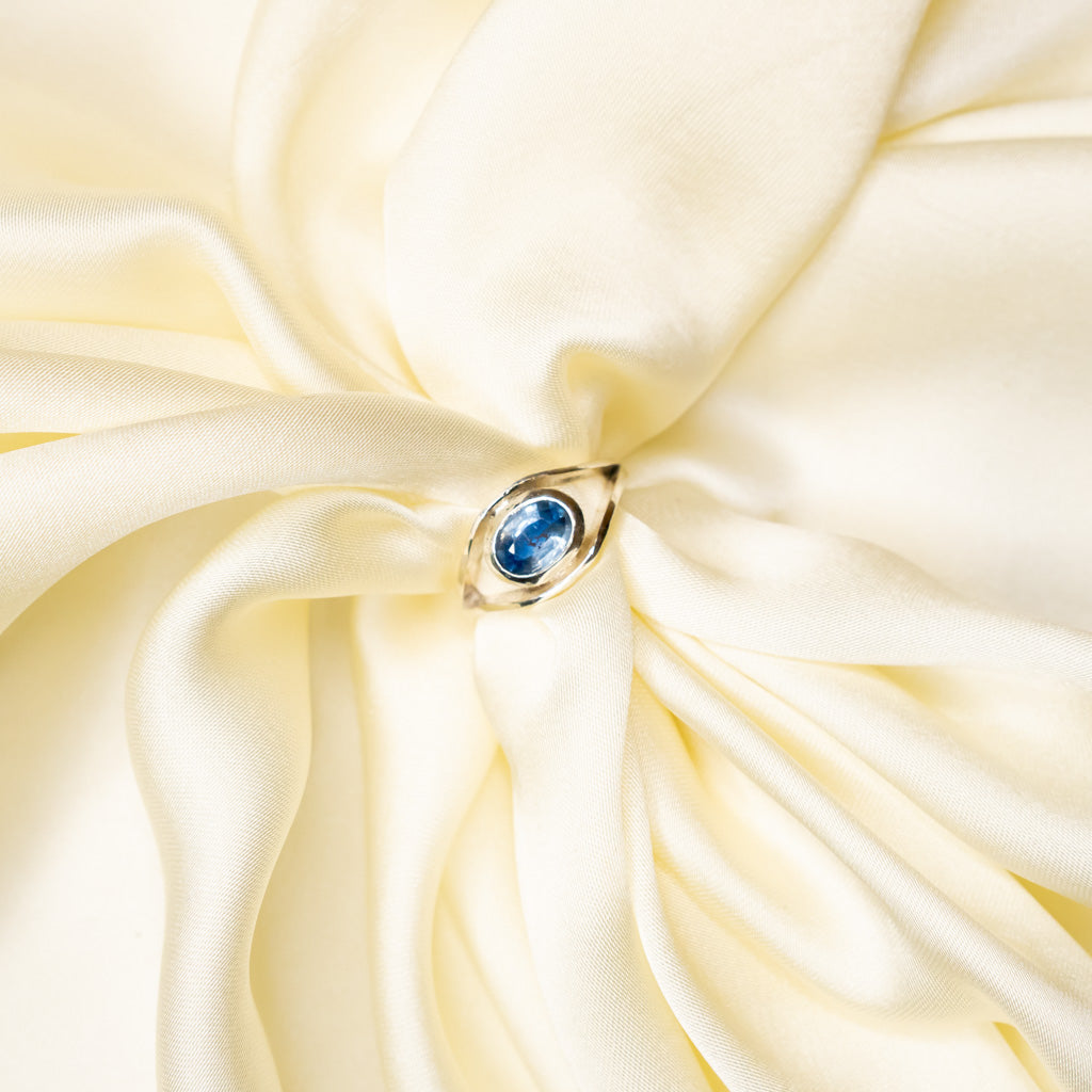 This elegant ring features a striking blue kyanite gemstone set in sleek, polished pure silver. The minimalist design highlights the natural beauty of the kyanite, making it a timeless piece that complements any style. Known for its calming and balancing energy, blue kyanite adds a touch of serenity and sophistication to your look. Perfect for everyday wear or special occasions, this delicate ring is a must-have for those who appreciate subtle, refined elegance