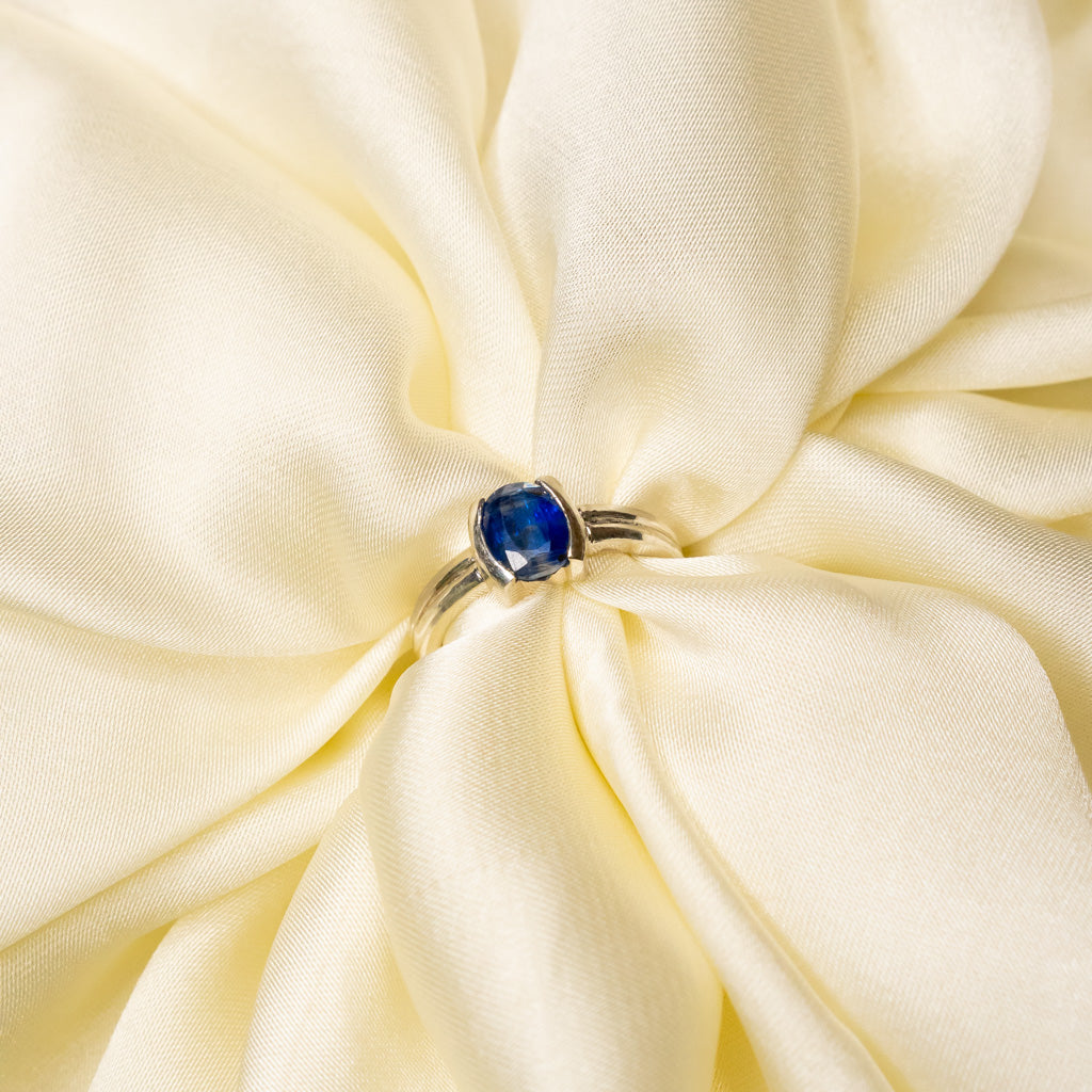 This elegant ring features a striking blue kyanite gemstone set in sleek, polished pure silver. The minimalist design highlights the natural beauty of the kyanite, making it a timeless piece that complements any style. Known for its calming and balancing energy, blue kyanite adds a touch of serenity and sophistication to your look. Perfect for everyday wear or special occasions, this delicate ring is a must-have for those who appreciate subtle, refined elegance