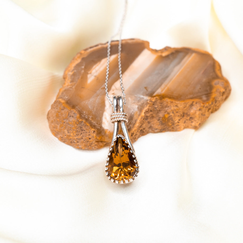 Radiating its warm glow, this Topaz pendant embodies hope and elegance.