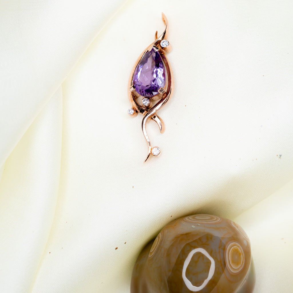 Set in silver, an amethyst pendant can take on both contemporary and vintage aesthetics, making it versatile for different styles. Pair it with casual looks, like a white blouse or neutral sweaters, for a pop of sophisticated color. For formal occasions, amethyst beautifully complements darker shades like navy, black, or emerald green, enhancing the pendant’s deep purple hue. This pendant is perfect for those seeking both a stylish accessory and a gemstone with a timeless, calming allure.